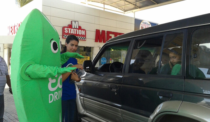 IPTEC’s Eco-Driving campaign continues at different IPT Stations where Eco-leaf & Pollumonster mascots are engaging with passer-byes to explain to them the benefits of eco-driving and provide them with the campaign’s eco-driving license! The customers were very interested to know more about eco-driving and they expressed their appreciation to such an initiative that can leave a positive impact on our health and environment through simple and easy eco-driving practices.